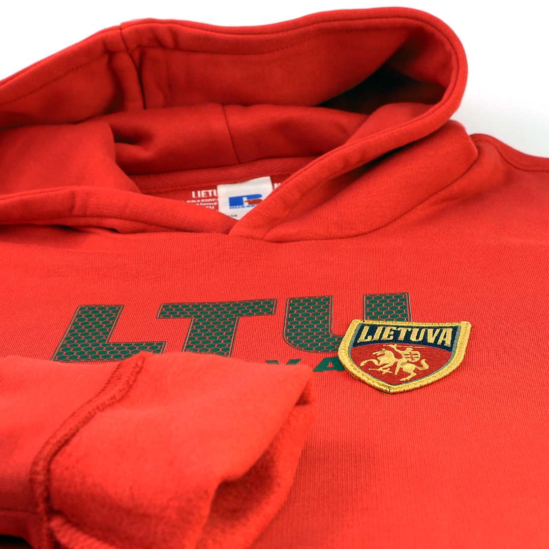 Stilingas ir šiltas raudonas vaikiškas džemperis „LTU Lietuva“ – puikus pasirinkimas mažiesiems, kurie jau nuo mažens puoselėja meilę savo šaliai. Džemperis dekoruotas „LTU Lietuva“ spauda ant krūtinės bei siuvinėtu Lietuvos antsiuvu. Gobtuvas be raištelių – saugesnis mažiems vaikams.