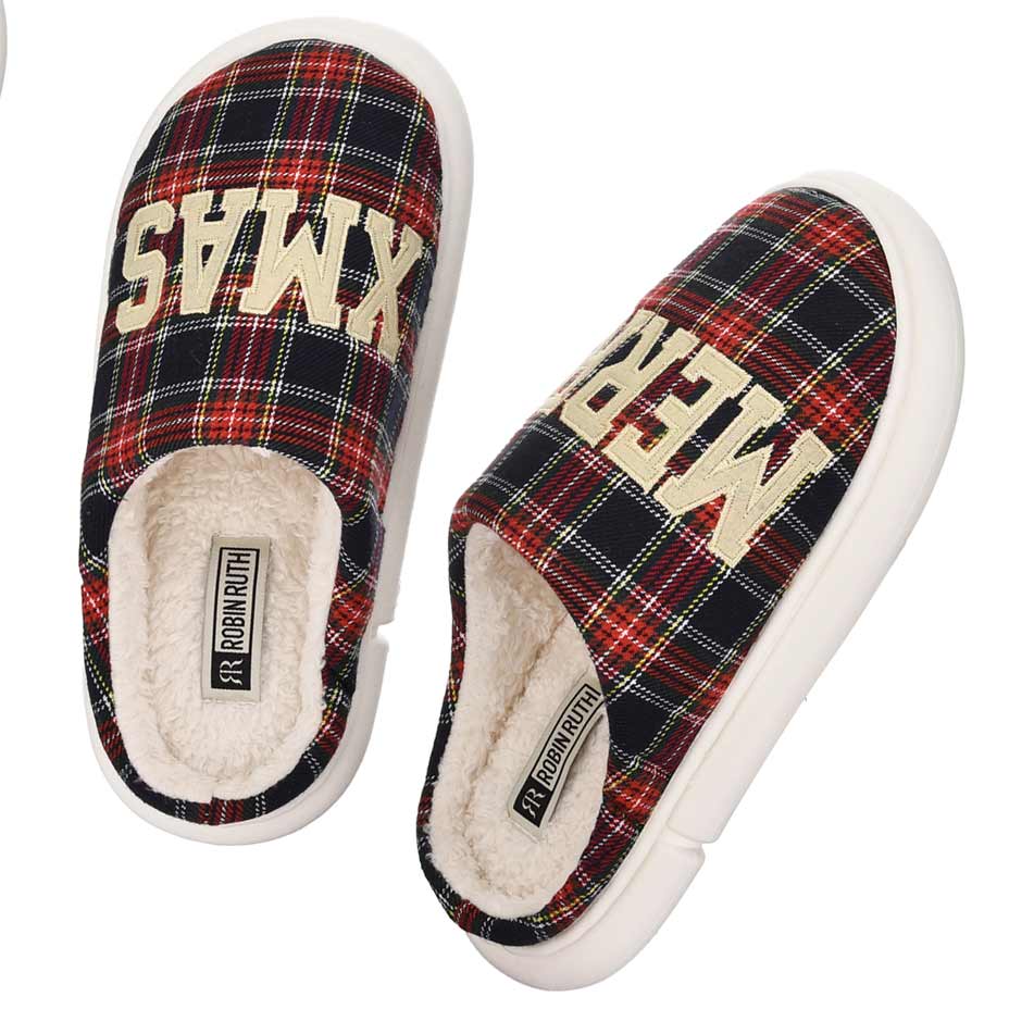 Vyriškos kalėdinės šlepetės „MERRY XMAS“ – šiltos, minkštos ir patogios žiemai.