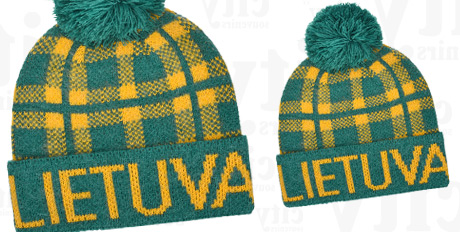 Švelnaus akrilo žalios spalvos raštuota trumpa žieminė kepurė su kutu ir užrašu Lietuva. Sudėtis: 100% akrilas.