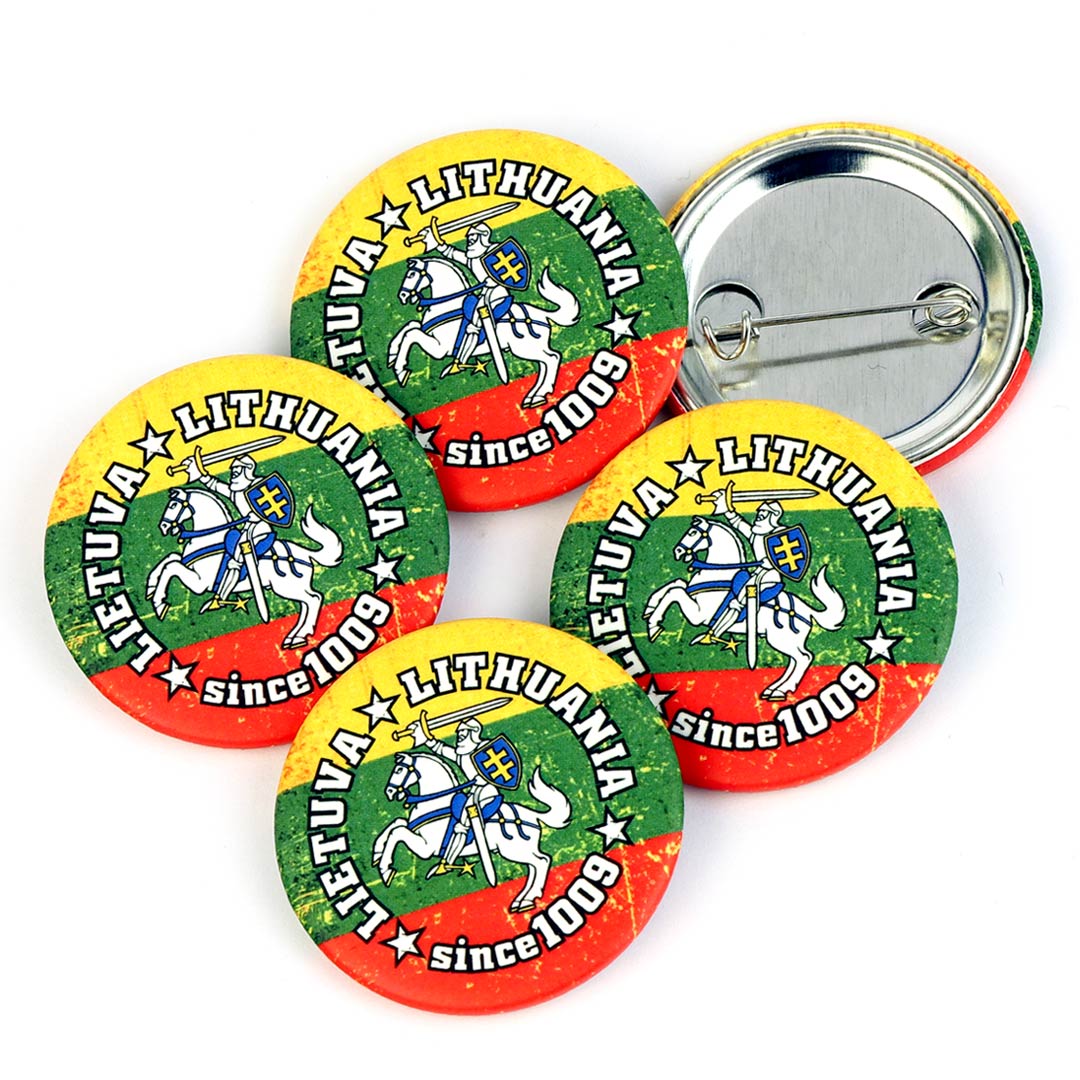 Ryškūs ir išskirtinio dizaino ženkliukai su Lietuvos simbolika ir Vyčiu – puikus pasirinkimas suvenyrų parduotuvėms, renginiams, reprezentacijai ar prekybai turistinėse vietose. Ženkliuko dizainas su užrašu „Lithuania since 1009“ pabrėžia Lietuvos istoriją ir identitetą, todėl produktas yra ypač patrauklus užsienio turistams. Trispalvės fonas kartu su Vyčiu sukuria stiprų vizualinį efektą, kuris iš karto traukia dėmesį prekybos vietose. Ø38 mm dydis – optimalus pasirinkimas: pakankamai didelis, kad būtų matomas, bet patogus nešioti ant drabužių, kuprinių ar aksesuarų.