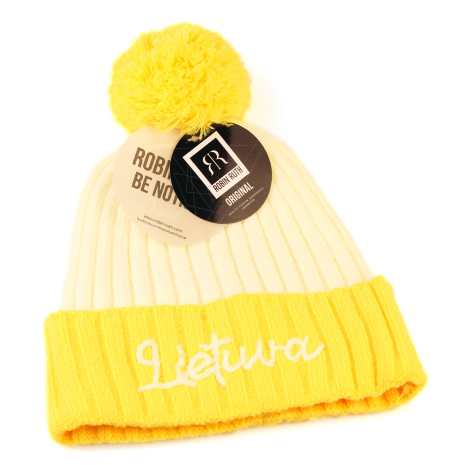 Žieminė Kepurė su Bumbulu „Lietuva“ – Geltona ir Balta