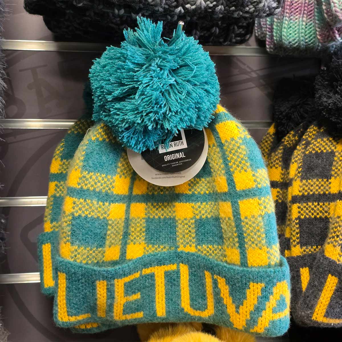 Šilta ir stilinga žieminė kepurė su užrašu LIETUVA, dekoruota išraiškingu raštu ir papildyta dideliu kutu. Žalios spalvos pagrindas su geltonais akcentais sukuria ryškų ir lengvai atpažįstamą lietuvišką įvaizdį.